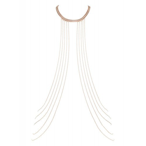• Δελικάτο κολιέ με αλυσίδες οι οποίες μπορούν να στολίσουν οποιαδήποτε ερωτικά εσώρουχα και πέφτουν μέχρι τους γοφούς