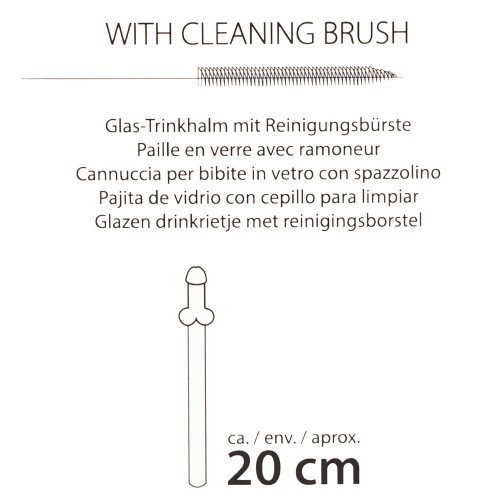Γυάλινα καλαμάκια σε σχήμα πέους, ιδανικά για τα πιο τρελά πάρτυ! Όχι μόνο κάνουν καλό στο περιβάλλον αλλά μπορούν να επαναχρησιμοποιηθούν καθως συμπεριλαμβάνεται ειδική βούρτσα καθαρισμού. Μπορούν να καθαριστούν εύκολα μετά από κάθε χρήση με την βούρτσα. Τα καλαμάκια πρέπει να καθαριστούν με ζεστό νερό πριν την πρώτη χρήση.