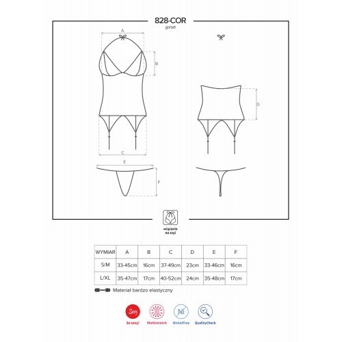 • Το σετ περιέχει μόνο τον κορσέ και το στρίνγκ, συνδιάστε με τις αγαπημένες σας κάλτσες