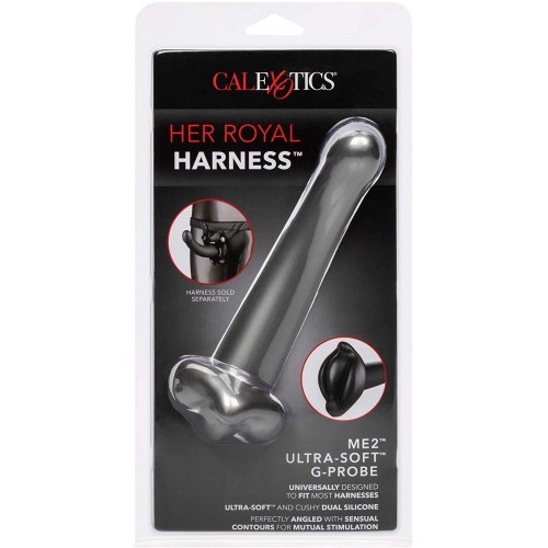 Ergonomicaly curvered Strap-on harness dildo "Τhe Her Royal Harness™ ME2™ Ultra-Soft™ G-Probe" is made to thrust you and your lover into the orgasmic world of mutual stimulation. The perfectly angled shaft, sensually contoured base and dual ended design is made to thrill with every thrust. The curved shaft and sensually contoured base delivers deeply orgasmic internal and external mutual stimulation. Use the curved body, sensual contour base and cushy dual ended design to reach new climactic heights.The accentuated probe and rigid shaft are created to perfectly tease intimate curves and indulge internal sweet spots for your lover, while you get lost in the teasing contoured base. This powerful probe is made for mutual stimulation and satisfaction with a perfectly contoured base and the g-spot teasing curved shaft. Made to caress yours and hers most intimate curves for double the orgasmic pleasure.