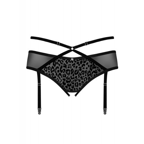 Στολίστε τις καμπύλες των γοφών σας με αυτή την αισθησιακή σε σχεδιασμό μαύρη ζαρτιέρα. Η ζαρτιέρα διαθέτει ένα παιχνιδιάρικο λεοπαρδαλέ μοτίβο, ενώ ο μοναδικός σχεδιασμός των τιράντων δίνει έμφαση σε όλα τα σωστά σημεία!