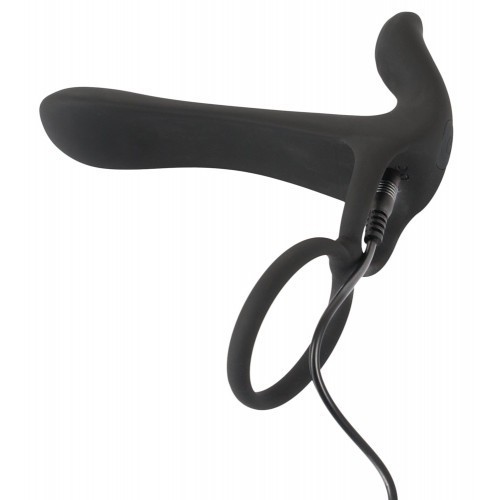 Έξυπνος συνδυασμός, πανέξυπνη σχεδίαση, προσθετικό δακτυλίδι πέους, όρχεων και ταυτόχρονα διεγέρτης κλειτορίδας μέ δύο μοτέρ δόνησης, για ταυτόχρονη κορύφωση και στους δυό σας! Δακτύλιος για τους όρχεις/πέος και ερεθιστής κλειτορίδας μαζί! Ο δακτύλιος πρέπει να τοποθετείται έτσι, ώστε ο δονητής να εφαρμόζει πάνω στο πέος. Αυτό σημαίνει ότι μπορεί να την ευχαριστήσει με ένα πιο παχύ πέος, αλλά και να απολαύσει το υπέροχο σφίξιμο. Και οι δύο σύντροφοι μπορούν να νιώσουν τις έντονες δονήσεις! Ο δακτύλιος πέους δημιουργεί στύση μακράς διαρκείας, χάρη στο φαινόμενο της συμφόρησης του αίματος, και ο δακτύλιος των όρχεων, βοηθάει στο να παραμένουν "όλα" στη θέση τους. Ο διεγέρτης κλειτορίδας έχει διεγερτική υφή και προκαλεί άμεσο ερεθισμό στο σημείο G της, με έντονες, συναρπαστικές δονήσεις. Οι 2 μηχανισμοί διαθέτουν 20 διαφορετικές λειτουργίες δόνησης, που μπορούν να ρυθμιστούν εύκολα με το κουμπί πάνω στο ερωτικό παιχνίδι. Ο δονητής για ζευγάρια μπορεί να χρησιμοποιηθεί και κάτω από το νερό, επειδή είναι αδιάβροχος! Η υψηλής ποιότητας σιλικόνη απαλής υφής, δημιουργεί υπέροχη αίσθηση στο δέρμα. Μπορεί να επαναφορτιστεί με το καλώδιο USB που περιλαμβάνεται. Μήκος 14 εκ. Μήκος διείσδυσης 11 εκ. Διάμετρος Ø 1,3 εκ έως 3,2 εκ- Δακτύλιος πέους Ø 3,2 εκ. Δακτύλιος όρχεων Ø 4,5 εκ. Οι δύο δακτύλιοι είναι εύκαμπτοι. Βάρος 92 γρ. Από σιλικόνη και PU. Επαναφορτιζόμενη - περιλαμβάνει καλώδιο USB.