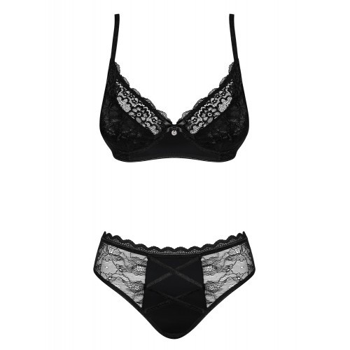 Μαύρο Δαντελωτό Σουτιέν με Εσώρουχο 2XL Obsessive Laurise