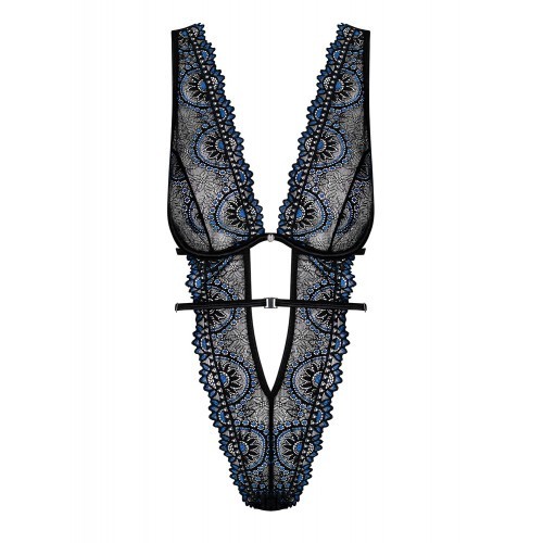 Εκπλήξτε και εντυπωσιάστε το ταίρι σας με αυτό το σέξυ και απίστευτα καυτό κορμάκι, το οποίο διαθέτει ψηλόμεσο σχεδιασμό καθώς και κομψές περίπλοκες λεπτομέρειες από δαντέλα σε μαύρο και μπλέ χρώμα!