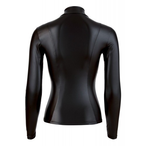Κάντε θραύση απόψε με αυτό το φετιχιστικού τύπου μπλουζάκι. Διαθέτει κολλάρο καθώς και πλήρης φερμουάρ από τον λαιμό μέχρι την κοιλιά. Συνδυάζεται υπέροχα με μίνι φούατες ή και δερμάτινα παντελόνια.