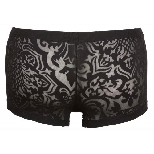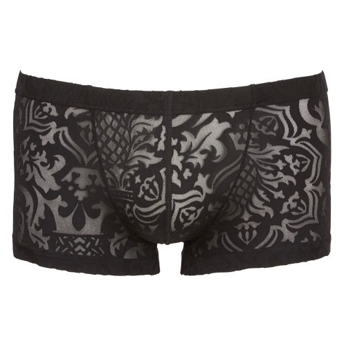 Κομψά σχεδιασμένο ημι-διάφανο ανδρικό μαύρο μποξεράκι διακοσμημένο από μοτίβα δαντέλας. Είναι απίστευτα μαλακό στην υφή, και είναι ελαστικό για μακροχρόνια άνεση.