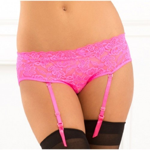 Sexy lace crotchless garter panty with cage back which shows only the top of your bottom.