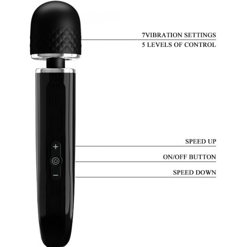2 σε 1 δονητής ραβδί μασάζ, Μεγάλου μεγέθους 29 X Ø 5,8 εκ, ο οποίος μπορεί να χρησιμοποιηθεί τόσο σε άνδρες όσο και σε γυναίκες. Ερεθίστε κάθε σας ευαίσθητη περιοχή όπως την κλειτορίδα, μέσω της στοχευμένης διέγερσης από τις 5 λειτουργίες δονήσεων και 5 ταχυτήτων οι οποίες μπορούν εύκολα να ελεχγθούν μέσω των ενσωματομένων κουμπιών. Με τον εργονομικό του σχεδιασμό, το ραβδί είναι εύκολο στο κράτημα, είτε το χρησιμοποιείτε σόλο είτε με ταίρι. Το ευλίγιστο του κεφάλι επιτρέπει τον ερεθισμό σημείων μέσω κλίσης, κάνοντας το παιχνίδι ακόμη πιο εύκολο και άνετο! Επαναφορτιζόμενο με συμπεριλαμβανόμενο καλώδιο.