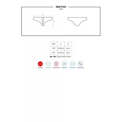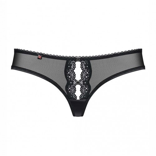Θα ήθελες να έχεις ένα εξαιρετικά προκλητικό εσώρουχο στη συλλογή σου; Τα έχουμε εμείς για εσάς! Υπέροχο εσώρουχο σε μαύρο χρώμα με δαντέλα και εντυπωσιακό σχέδιο στο μπροστά μέρος, αλλά και με γυαλιστερό σατέν στο πίσω μέρος για σέξι εμφάνιση. Με μαλακές ραφές για μεγάλη άνεση άνεση και ωραίο, ελαστικό ύφασμα. Όλα τα εσώρουχα Obsessive είναι ιδανικά για δώρο σε ειδικό χάρτινο πολυτελές κουτί .