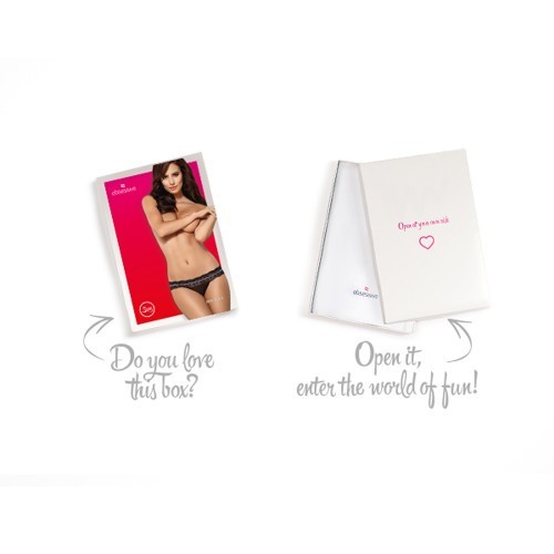 Χαμογελάστε γιατί αυτό το κουτάκι με το συγκεκριμένο εσώρουχο έχει ένα σέξυ στοιχείο που πραγματικά περιμένατε..! Υπέροχη δαντέλα με γοητευτικές λεπτομέρειες σε ένα πανέμορφο στρινγκ !