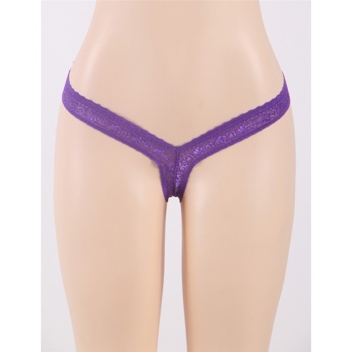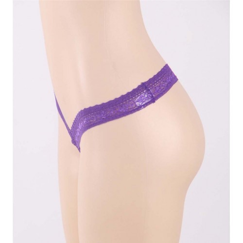 Wrap your booty in this minimalistic purple lace beauty. The cheeky string will sit low on your hip. Delicate lace underwear covers only small part of your body.