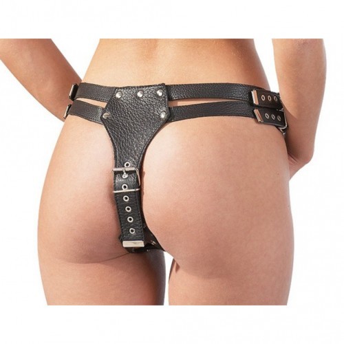 Δερμάτινη ζώνη στραπόν στρίνγκ με τρία ντίλτο L-XL