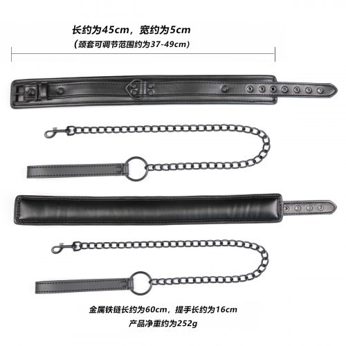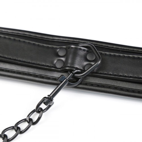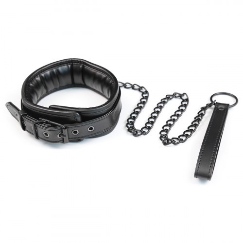 Φετιχιστικό ρυθμιζόμενο Μαύρο δερμάτινο Κολάρο λαιμού chocker με αποσπώμενο μαύρο μεταλλικό λουρί αλυσίδα Naughty Toys. Ένα μέγεθος, υψηλής ποιότητας φετιχιστικό μαύρο ρυθμιζόμενο δερμάτινο Κολάρο λαιμού chocker με αλυσίδα-λουρί της Naughty Toys. Τό δέρμα είναι επενδυμένο εσωτερικά με ειδικό foam, έτσι ώστε να 1) έχει άνετη επαφή με τον λαιμό 2) να μην προκαλεί εκδορές και μώλωπες στον δέρμα γύρο απο τον λαιμό και 3) Οσο πιό ισχυρό δέσιμο/σφίξιμο