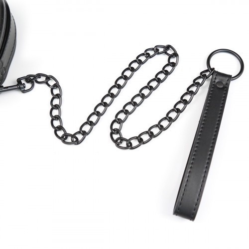 Μαύρο Κολάρο λαιμού με αποσπώμενο μαύρο μεταλλικό λουρί Naughty Toys