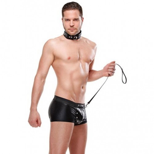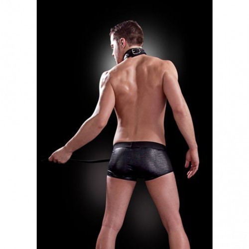 Επίσης, το σετ, προσφέρεται δερμάτινο κολάρο λαιμού με δακτυλίδι, στο όποιο και πάλι προσδένει το δερμάτινο λουρί.