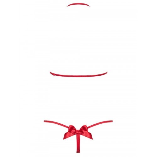 Εκπληκτικό σετ με κόκκινη διαφάνεια που συνδυάζεται μοναδικά με τους κόκκινους φιόγκους στο στήθος αλλά και στο κάτω μέρος του εσωρούχου, πραγματικά μια τέλεια επιλογή.
