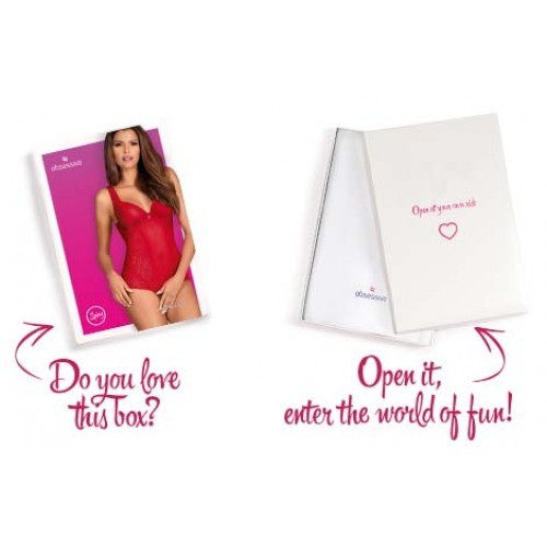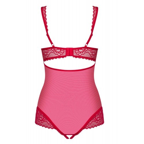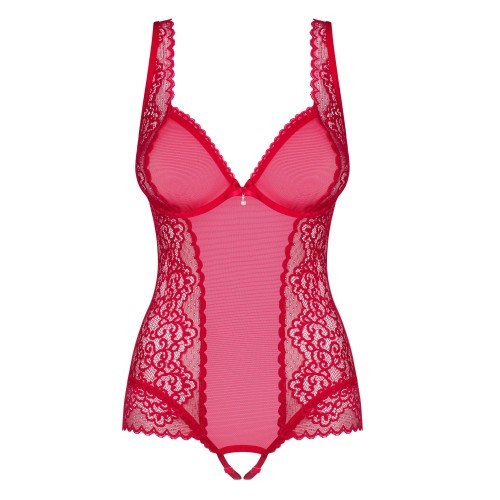 Αισθησιακό κορμάκι με τολμηρό ανοιχτό κάβαλο σε ερωτικό κόκκινο χρώμα και λεπτομέρειες από κομψή δαντέλα.