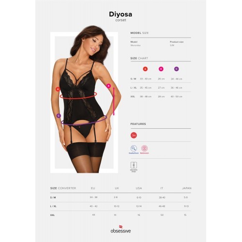 Τολμάτε να δοκιμάσετε κάτι νέο; Κομψός σχεδιασμός, αισθησιακή δαντέλα και μαλακό ύφασμα το οποίο αγκαλιάζει υπέροχα τις καμπύλες σας. Διστάζετε ακόμη; Προετοιμαστείτε για μια αξέχαστη εμπειρία απόλαυσης με το ταίρι σας σε αυτόν τον ελκυστικό κορσέ και αφήστε τον εαυτό σας να παρθεί από τον καυτό συνδιασμό του κορσέ με το στριγκάκι που περιέχεται.