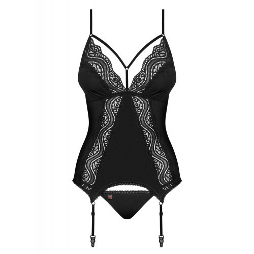 - Μαύρος κορσές και στρινγκ διακοσμημένο με δαντέλα