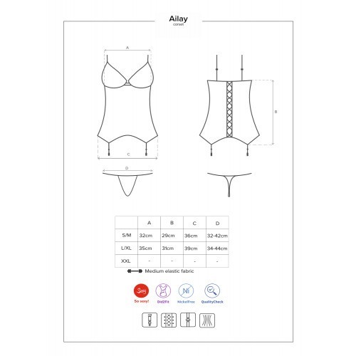 Obsessive - Σεξυ σετ με Κορσέ, στρινγκ και ζαρτιέρες - Ailay. Αυτό το κορσέ δίνει έμφαση στις όμορφες καμπύλες του σώματός σας. Κοιτάξτε το κορδόνι στο πίσω μέρος.