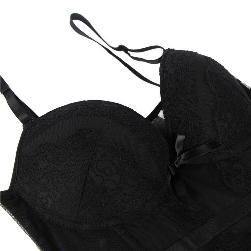 Delicate touch with amazing view! Surprise your loved one with your new sexy look! Elegant black corset with detacheable suspender straps and matching string.