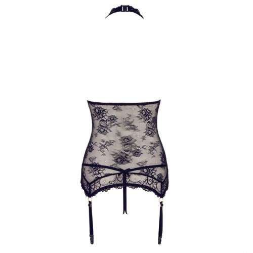 • Four adjustable suspender straps are attached to the lace hem The crotchless string is included