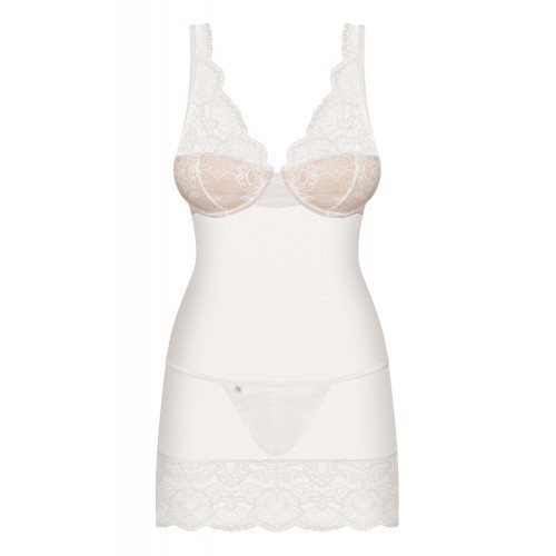 Elegant off-white chemise with charming sligthly padded lace cups. The underwired cups will give beautiful rond shape to your breats. Set includes a translucent mesh string to make your evening wear complete.
