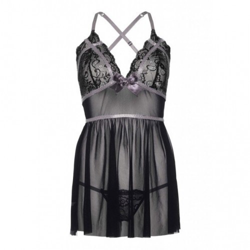 Adorable mesh babydoll with metalic lace cups from Leg Avenue. The babydoll is decorated with satin details.
