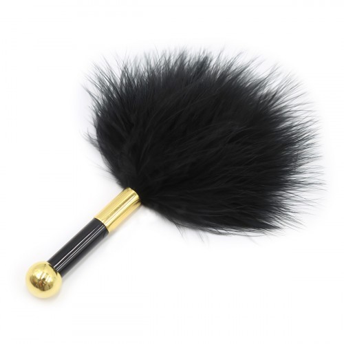 Αισθησιακή Μαύρη πουπουλένια Γαργαλίστρα με ακρυλική χρυσή χειρολαβή 17 εκ