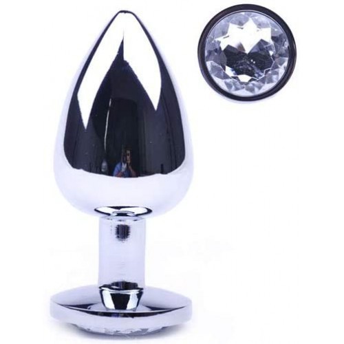Μεγάλου μεγέθους Μεταλλική Πρωκτική Σφήνα Αλουμινίου 9 cm X Ø 4 cm μέ φαντακτερό διαφανές κρυστάλλινο διαμαντάκι διακόσμηση στήν τάπα NAUGHTY TOYS. Πρωκτικό κόσμημα το οποίο θα δώσει χρώμα και λάμψη στον πωπό.
