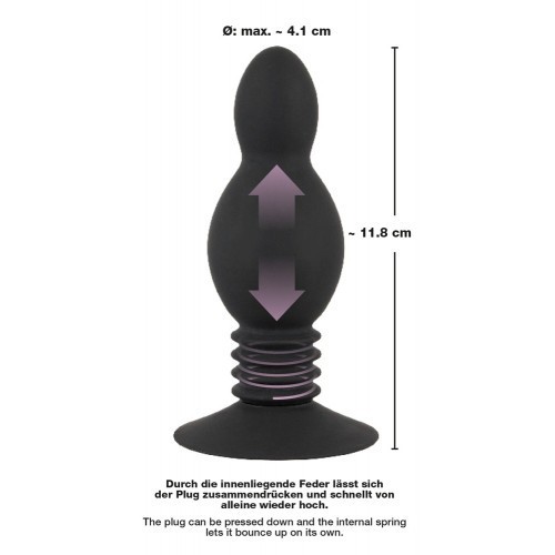 Απολαύστε πρωκτικό, μοναχικά η με την/τον συντροφο σας με την νέα Πρωκτική σφήνα, η οποία διαθέτει ενσωματομένο ελατήριο για αναπήδηση μπρός-πίσω 4024144546657. Μαύρη κλασική σφήνα με ισχυρή βεντούζα σε βάση, η οποία αναπηδά όταν σπρώχνεται προς τα κάτω ( δες τις φώτο πιο κατω)! Εισέρχεται με μεγάλη ευκολία χάρη στο εργονομικό της σχήμα και στην βελούδινη μαλακή επιφάνεια της, προσφέροντάς τα απαράμιλλη πρωκτική απόλαυση (ή γιατί όχι και κολπικής).