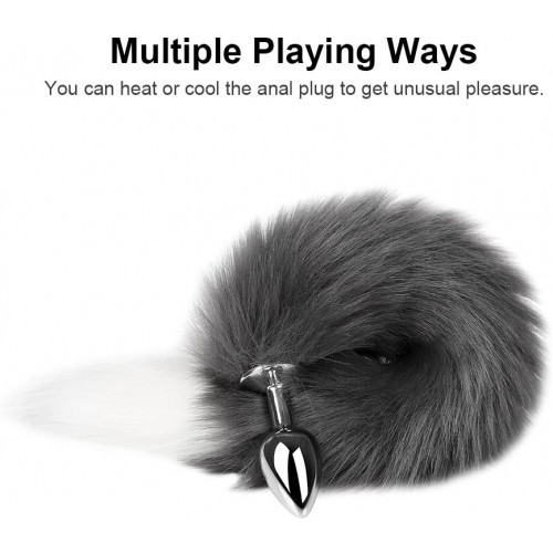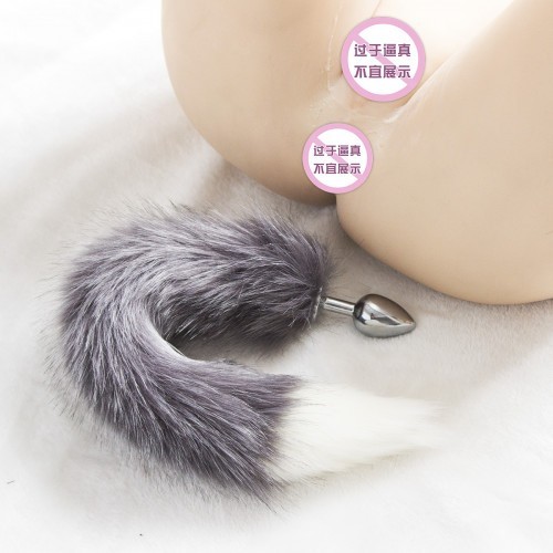 Naughty Toys, μέτρια (8 Χ Ø 3,4 εκ) γκρί συνθετική oυρά με λευκό άκρο και με μεταλλική πρωκτική σφήνα γιά ατελείωτα παιχνίδια ερωτικών ρόλων όπως Καμαριέρα, Κουνελάκι, Άτακτη Αλεπουδίτσα, ο Κακός Λύκος... και πολλούς άλλους. Μεγάλου μεγέθους μεταλλική πρωκτική σφήνα γιά προχωρημένους (άντρες-γυναίκες) στον κόσμο της πίσω πόρτας. Οι φαντασιώσεις δίνουν χρώμα στην ερωτική σας ζωή. Κάντε το σέξ πιό παιχνιδιάρικο η αν θέλετε ... πιο κίνκι. Όμορφη ζεστή αισθησιακή πρωκτική σφήνα με ουρά για τους λάτρεις των ερωτικών ρόλων σε συνδυασμό με πρωκτικό παιχνίδι... και οχι μόνο. Συνδυάστε μόνο με λιπαντικά νερού - οτιδήποτε αλλο μπορεί να προκαλέσει ζημειά στο προιόν.