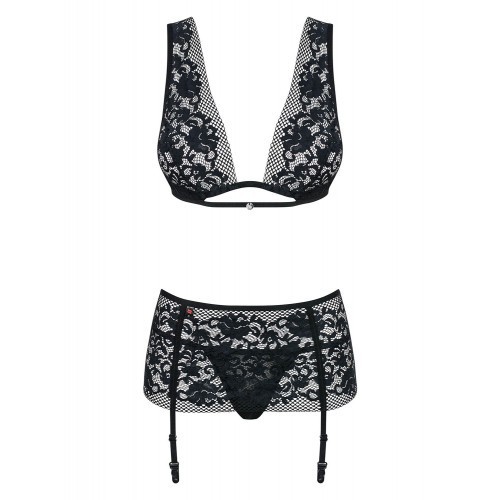 Έχετε ονειρευτεί ποτέ υλικά που είναι ευχάριστα στην αφή, τα οποία τυλίγουν το σώμα σας ενώ τονίζουν τις καμπύλες σας; Με αυτό το σετ εσωρούχων Figurea, πραγματοποιείστε αυτά τα όνειρα. Φορέστε αυτό το σέξυ, δαντελωτό σετ εσωρούχων και απολαύστε ένα μαγικό απόγευμα! Είναι ένα εξαιρετικά θηλυκό σετ φιγούρας, το σουτιέν διαθέτει μπανέλες για να δημιουργήσει ένα εκθαμβωτικό μπούστο, καθώς επίσης και τιράντες με ρυθμιζόμενο ύψος και κλείνει στο πίσω μέρος. Η ζαρτιέρα είναι μοναδική ραμμένη όλη από δαντέλα. Τέλος το σλιπ string ταιριάζει τέλεια με το όλο σύνολο Σετ που περιλαμβάνει: σουτιέν, στρινγκ, ζώνη καλτσοδέτας (δεν συπεριλαμβάνονται κάλτσες). Ευρωπαϊκό προϊόν και ευρωπαϊκής κατασκευής από τον οίκο Obsessive.