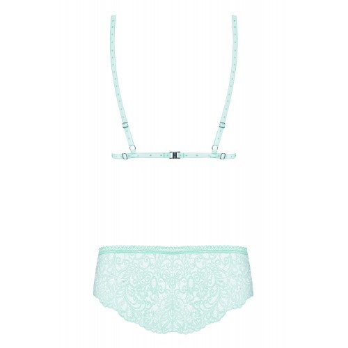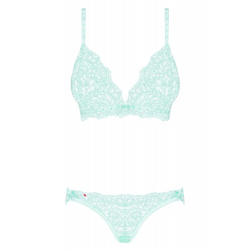 Σετ Γυναικείων Εσωρούχων Delicanta σε έντονο τιρκουάζ χρώμα. Υπέροχο σετ γυναικείων εσωρούχων Delicanta δύο τεμαχίων κατασκευασμένα από ποιοτική δαντέλα σε χρώμα μέντας. Μια μοναδικότητα που σίγουρα θα ξεχωρίσει στην γκαρνταρόμπα σας και θα σας επιτρέψει να έχετε μια κομψή και απίστευτα σέξυ εμφάνιση. Μαλακή δαντέλα, λεπτή επένδυση. Τα κύπελλα δεν έχουν μπανέλες, είναι μαλακού τύπου, με ένα γοητευτικό φιόγκο στη μέση. Υπέροχα κομμένα εσώρουχα τονίζουν τέλεια το κάτω μέρος.
