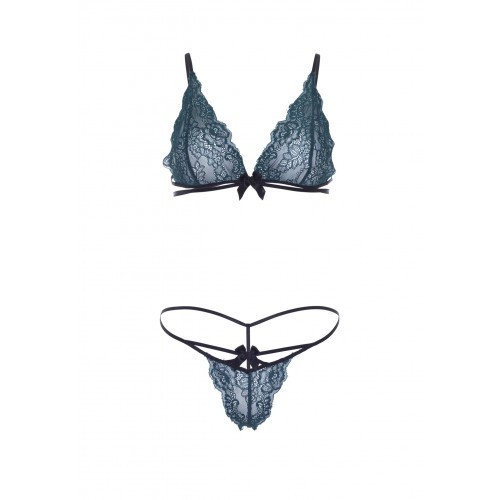Deep green sexy lingerie set from Leg Avenue Lingerie line. The set includes a soft lace bra with flirty bow decoration on the front, strappy back and a matching G-string.