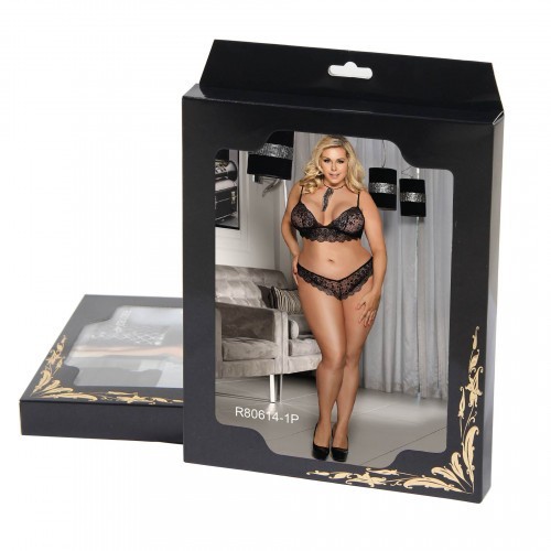 Plus Size Coquette Bralette Lingerie Set Black