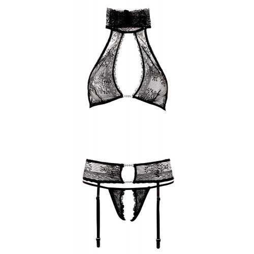 Γυναικείο σετ Abierta Fina Σεξι, πρόκληση μυστήριο σε τεσσέρα μεγέθη Μικρό, Μέτριο, Μεγάλο και XL. Γυναικείο Σετ με 3 κομμάτια. Σουτιέν-μπουστάκι, Σλιπάκι με ανοιχτό καβάλο και ασορτί ζαρτιέρες. Ενα καθόλα προκλητικό σέξι μυστηριώδες ελκυστικό δαντελένιο συνολάκι Albierta Fina το οποίο θα σε κάνει να νιώθεις ΣΕΞΗ! Θα σου βγαλει ολο τον ερωτισμό!