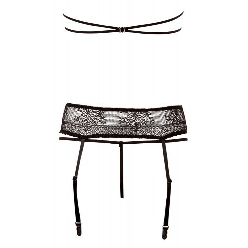 Η συσκευασια περιλαμβανει 3 κομματια. Σουτιέν-μπουστάκι σλιπάκι με ανοικτό καβάλο και ζαρτιέρες.