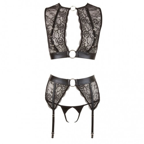 Μαύρο συνολάκι Σετ ζαρτιέρες με χειροπέδες