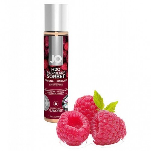 Jo Raspberry Sorbet Flavored Water Based Lube 30 ml. A sweet, ultra juicy lubricant from System Jo, this crystal clear water based treat enhances sex with tons of long lasting slipperiness and a deliciously silky feel, not to mention a mouthwatering hit of fruity flavor with no unpleasant aftertaste. H20 can be used safely with condoms and all toy materials, it's sugar free for guiltless indulgence, and the long lasting, water soluble formula won't stain sheets, clothing or skin.