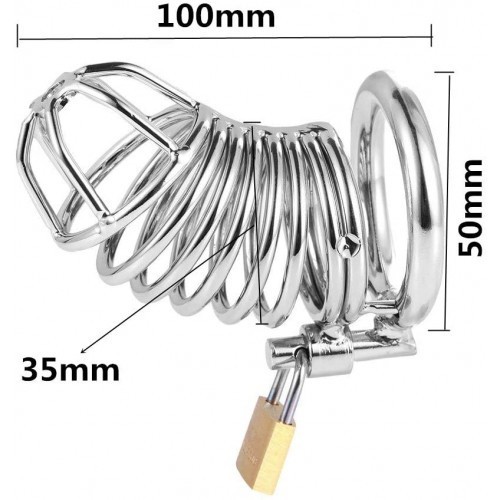 Μικρό προς Μέτριο μέγεθος ατσάλινο μεταλλικό κλουβί περιορισμού και ελέγχου του Πέους S/M με μεταλλική κλειδαριά - 2 κλειδιά.