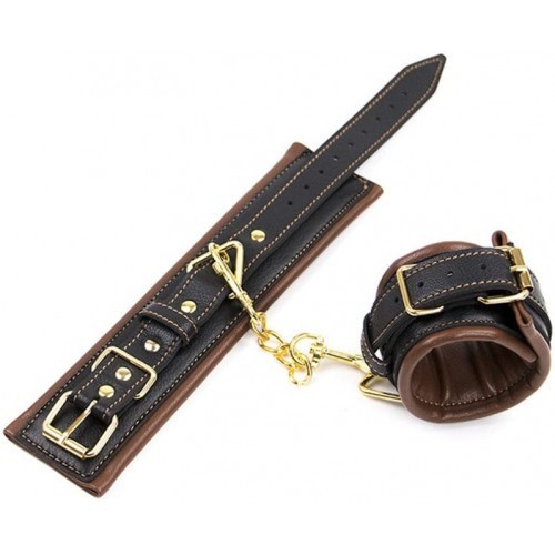 Υψηλής ποιότητας φετιχιστικό bdsm σετ δεσμών στούς ατράγαλους των ποδιών NAUGHTY TOYS, ένα μέγεθος, ρυθμιζόμενες. Κατασκευασμένα με υψηλής ποιότητας PU δέρμα. Επενδυμένο εσωτερικά με ειδικό foam έτσι ώστε να επιτυχάνεται ισχυρό μεν δέσιμο αλλα πολύ άνετη, χωρίς γδαρσίματα εφαρμογή στους αστράγαλου. Ιδανικό και για τα δύο φυλα. Πανέμορφος χρωματικός συνδυασμός Καφέ - Μαύρο με χρυσή αλυσίδα. Υψηλής ποιότητας ραφή για πολλά χρόνια χρήση. Ποπιοτικότατο, σχεδιαστικά ισως το καλυτερο σέτ που ειχαμε ποτέ για ατελείωτα Μποντάζ φετιχιστικά παιχνίδια περιορισμού στο κρεββάτι. Συνδυάστε με ασορτί δεσμά καρπών της ιδίας σειράς και καντε τον/την σκλαβα /ο ακριβως οτι φαντασιωνεστε. ΔΕΣΜΑ ΠΕΡΙΟΡΙΣΜΟΥ ΜΕΣΑ ΑΠΟ ΤΙΣ 50 ΑΠΟΧΡΩΣΕΙΣ ΤΟΥ ΚΥΡΙΟΥ ΓΚΡΕΙ