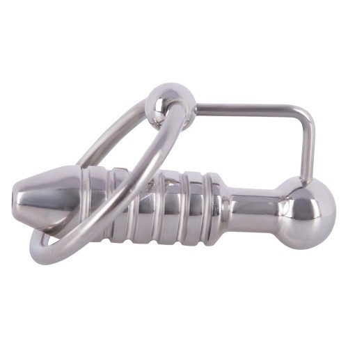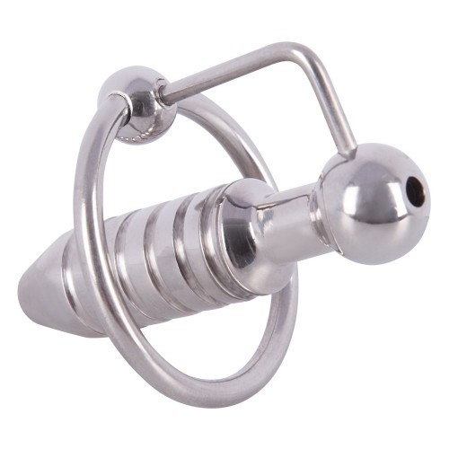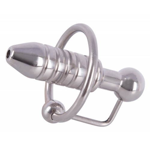 Stainless steel Penis hollowed plug with glans ring for urethral stimulation. Looks and feels great! Silver-coloured, swivelling glans ring (Ø 2.8 cm) with a hollow dilator that is open at both ends 5 cm long
