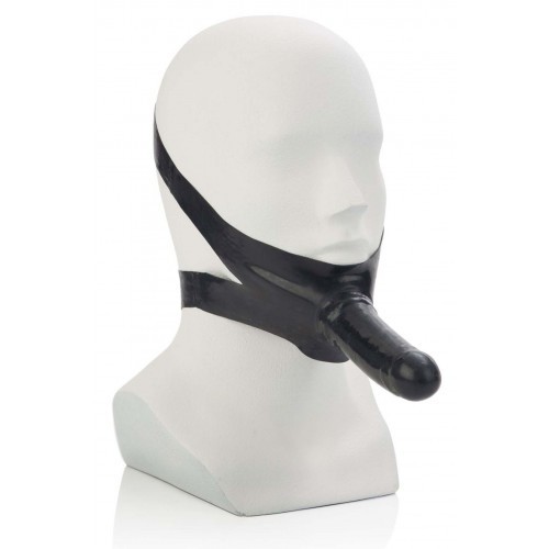 Μαύρος λάτεξ ιμάντας προσώπου με ομοίωμα πέους Accommodator