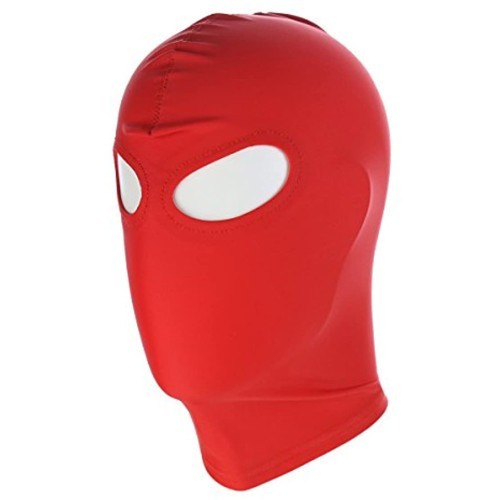 Naughty Toys Bondage play hood with mouth covered in red color option. Large size, Spandex elastic fabric, sex play face mask hood with two openings - holes for the eyes.