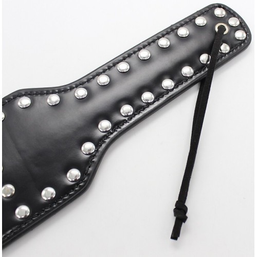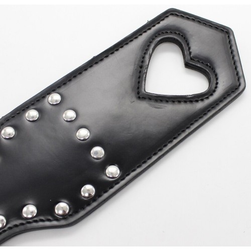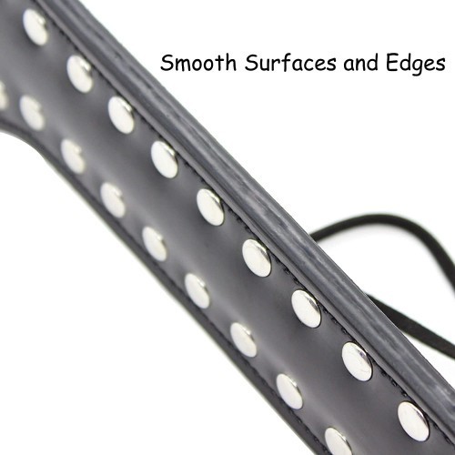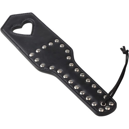 Quality bondage spanking paddle whip by Naughty Toys. One crack of this firm Naughty Toys Love Paddle and your subject will know who's in charge. Deliver some serious playtime punishment with one swift whack while the metal studs kiss their skin with a sting. It never hurt so good!