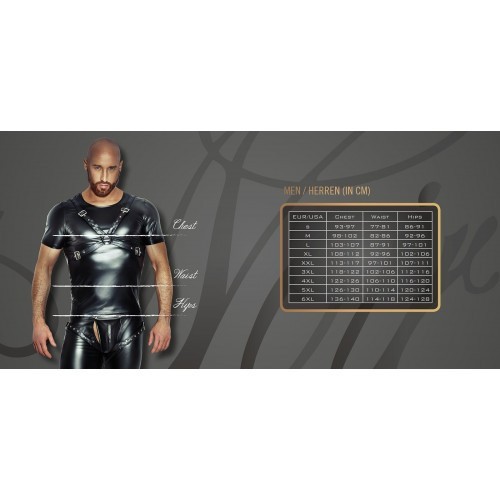 Absolute must-have in your wardrobe. A T-shirt made of powerwetlook with inserts of soft 3D net brings out your carved chest and shoulders.