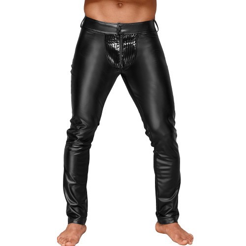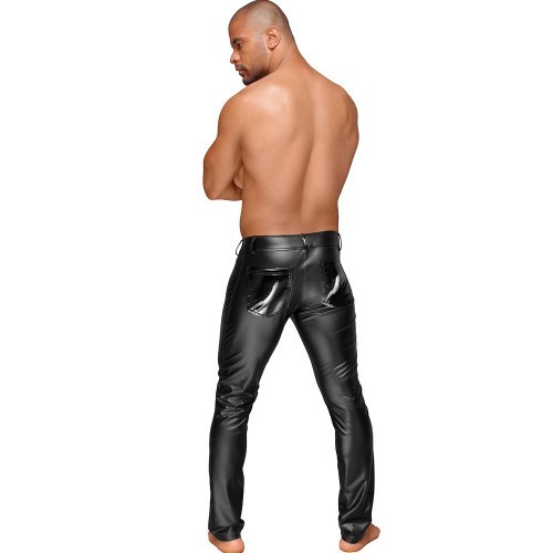 Classic style of these powerwetlook men's trousers is broken with PVC pleats in the front. Pockets on the back are made of smooth PVC as well. Closing is nice and simple: quality zipper and a single clasp for your comfort.