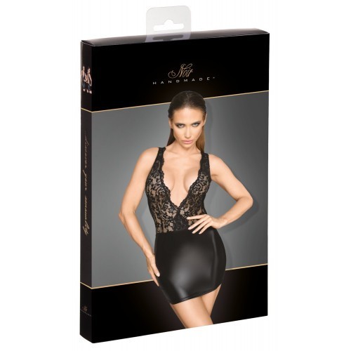 Noir Wetlook/Lace Mini Dress