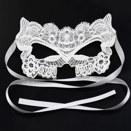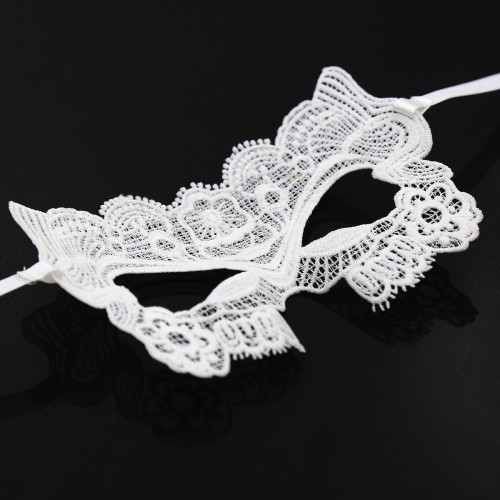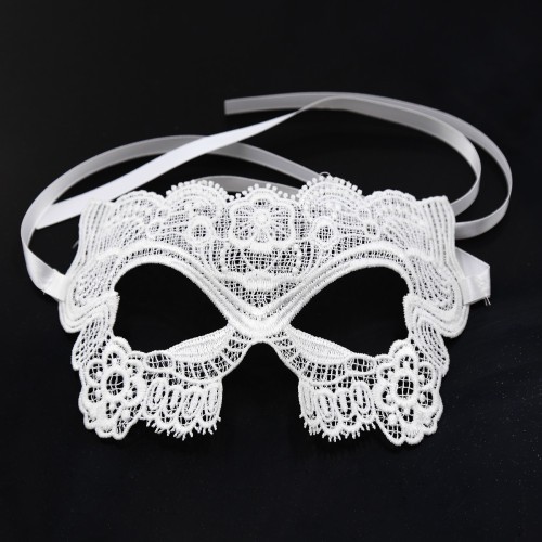 Κεντημένη λευκή μάσκα ματιών με σατέν δέσιμο στο πίσω μέρος και με ντελικάτες λεπτομέρειες σε υπέροχο σχήμα που πλαισιώνει όμορφα τα μάτια. Ένα ιδιαίτερο bride αξεσουάρ αλλα και για role-playing game.